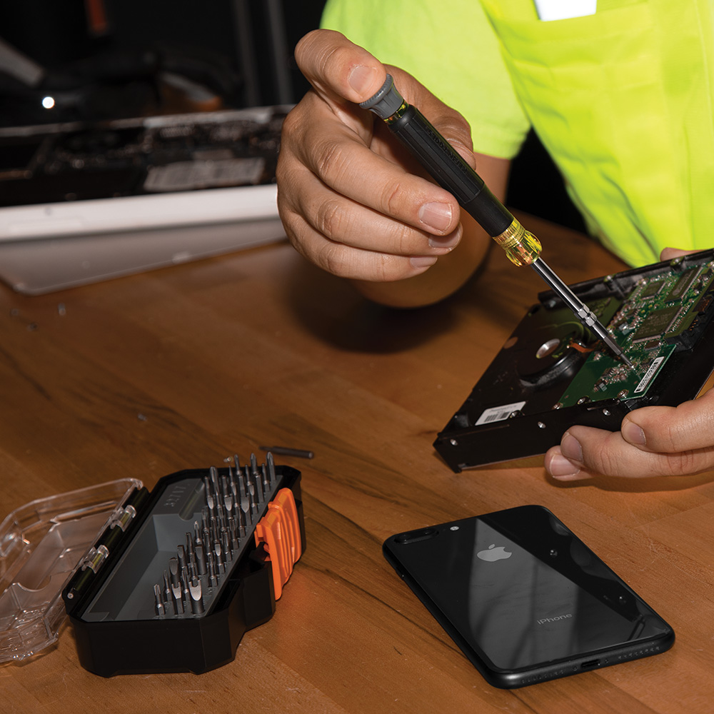 • Precision screwdriver set includes 39 bits for various applications, including the repair of most Apple® products
