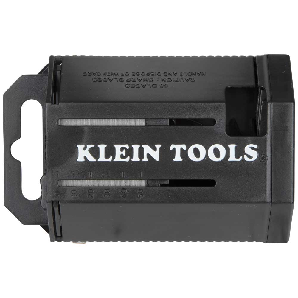 Keep a healthy supply of extra utility knife blades on hand with this convenient Utility Knife Blade Dispenser from Klein Tools. It comes with 50 high-quality triple-ground blades designed to stay sharp longer. This handy dispenser also features a moulded gauge on the front indicating how many blades are left in the dispenser.